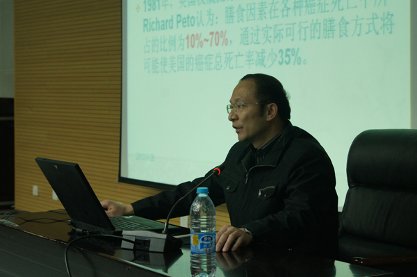 3月28日14点30分,关于“饮食与癌症”的讲座在崇鋈楼三楼归仁堂举行,本场讲座由我院副院长杨维平教授主讲。我院近两百学生聆听了这次讲座。讲座由院办公室主任窦文阳老师主持。