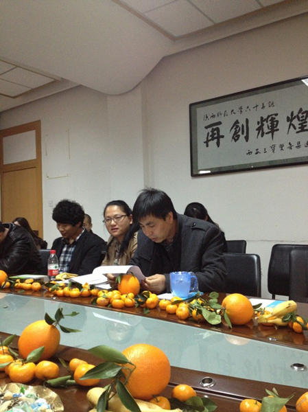 为总结本学期班级工作,12月11日下午在逸夫楼三层会议室,学院召开了“2012级民硕班干部结座谈会”。民硕班班主任李明老师、刘丁老师、宁云霞老师、段亚绒老师,成珊娜老师,以副书记窦文阳老师参加了座谈会。会议由兼职辅导员王嘉欣主持。