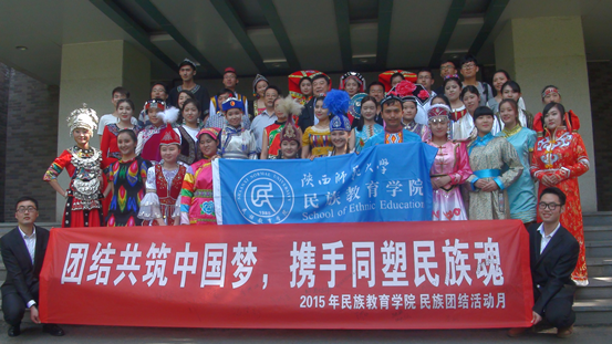 的基本情况和办学理念,高度强调民族团结进步的重要性,号召少数民族学生要通过此次活动的举办,加强各民族间的深入交流,强化中华民族认同,营造和谐校园环境。之后,校团委副书记祁斌业用激情昂扬的声音宣布民族团结活动月正式开始。随后,在开幕式上,我院维吾尔族,哈萨克族,柯尔克孜族,蒙古族,藏族、土族等15个民族的同学身着自己的民族服饰,向大家展示了少数民族特色和风情。最后,与会的领导和师生在横幅上签名留念,预祝本次“民族团结活月”取得圆满成功!