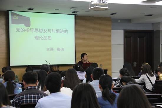 2016年4月14日,我院于崇鋈楼思齐堂举行了第九期党课培训第二讲。数科院党委副书记崔创以《党的指导思想及与时俱进的理论品质》为主题,史实结合,作了一场精彩的讲座。