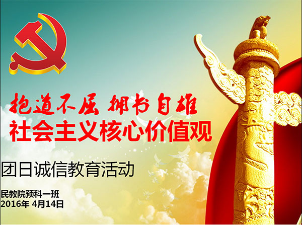 践行“抱道不曲,拥书自雄”学风,争做社会主义核心价值观代言人。5月17日下午,我院预科一班团支部举办“传承诚实守信美德,加强民族团结”主题团日活动,旨在引领我院学子弘扬民族精神,传承中华美德,积极践行社会主义核心价值观。副书记窦文阳、团总支书记萨仁娜、预科一班辅导员以及来自文、理科部的学生代表参加了本次团日活动。