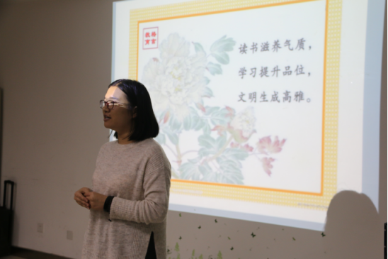 读书交流会开幕仪式秩序井然的进行,主持人以播放幻灯片的方式向在场的同学们详细的介绍了本次读书交流会各负责人的分工情况及活动背景、活动意义、活动目的、活动主题等一系列关于活动的相关内容,读书爱好者们用抽签的方式来分成四个小组进行交流。本次读书交流会别开生面,将分为四期举行。预计第一期交流会中,读书爱好者们将把自己读的书用放幻灯片的方式与大家分享;第二期交流会中,每个小组提前定好主题,书爱好者们讨论主办方提供书、杂志、资料等内容,畅所欲言进行交流学习;第三期交流会将以知识竞赛的方式来举行;第四期交流会以综合性测试的方式来举行。最终,交流会将会为表现出色、活动成绩突出的小组进行总结性表彰并颁发奖状。本科预科班兼职辅导员刘雅丽老师作了发言,表示对本期读书交流会活动有很大的期望,并且鼓励大家在平时学习生活中多读几本好书,从而开阔眼界,增长知识,同时也预祝本次活动能够取得圆满成功。开幕仪式结束后大家纷纷在主题横幅上签上了自己的名字。