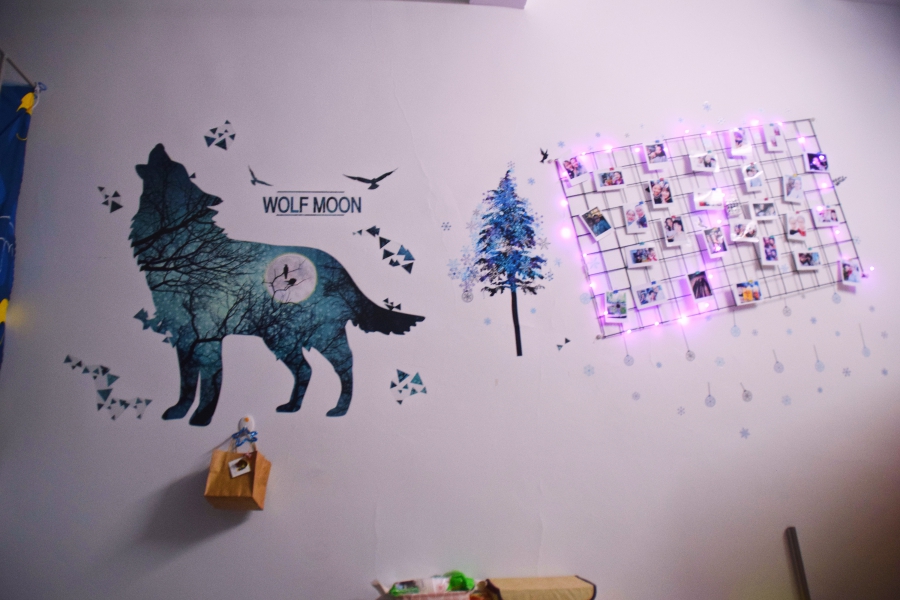 12月25日下午3点,宿舍文化节的评比活动正式开始。老师们及生活部干部先后走访参观了男生4-5号学生宿舍楼和2-3号女生宿舍楼。一进楼道,便能看见走廊上的相框里有学生们青春洋溢的笑脸,一望到小粉楼2栋三楼的走廊尽头,色彩艳丽的民族卡通画象扑入眼帘,那些别出心裁的宿舍主题风格和装扮创意更是令人眼前一亮,这些无一不显示出宿舍文化节浓厚的气氛。还有的宿舍墙上挂着的艾德莱斯绸,铺着民族风花纹桌布的桌子上摆放的馕,墙面上挂着的马头琴,都将民族文化融入生活之中。一些宿舍里挂着同学们手绘的人像画,精美的手工叠纸,得到了各位参审评委老师们的一致称赞。在参观过程中,老师们不仅对同学们参与宿舍文化节的热情表示肯定,同时对大家在宿舍评比中发现的问题提出了指导性的建议。