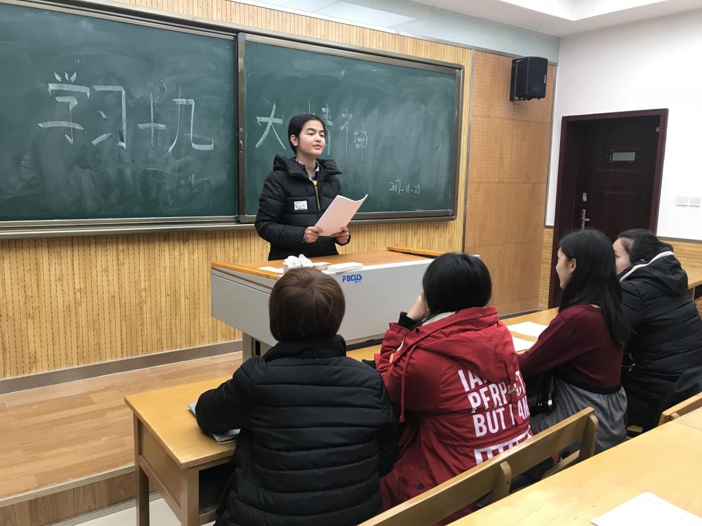 十九大的召开,标记着中国迈进了一个新的历史时期。为贯彻习近平总书记的重要讲话精神,让青年明确身为青年团员在新的历史时期和时代背景之下的精神理想和奋斗标,于2017年9月至12月,我院各班团支部在组织同学们收看十九大盛况后,定期有组织的开展了各类主题班会、辩论赛、演讲比赛和知识竞答等团日活动。活动内容主要有:十九大知识的竞答、了解十九大习主席的讲话内容、学习习主席系列重要讲话的主要精神、同学们结合自身实际谈谈身为青年团员应当怎样做、送给同学们的青年寄语等……,各班团支书带领同学们就“十九大”、“中国梦”、“新时期的新矛盾”、“五位一体”、“四个全面”、“砥砺奋进的五年”等当下社会热词进行学习和探讨。有些班级分享了人民日报自制短片“刻度上的五年”让同学们了解到了这五年来中国从“毫米之微到万里之遥”的巨变和飞跃。这些变化都不禁让在场的每一位同学都为之感动。有些班级的主持人在希望同学们踊跃分享收获与感悟时,以奖励小礼品的方式调动同学们积极性,使得气氛端正而又不失活泼,再加上班会内容充实而生动……同学们心中汹涌澎湃的爱国情怀被激发,纷纷举手发言,直抒爱国豪情,并表示,当中年人依然阳光,当青年人充满力量,这便是最好的中国。梦想是属于我们这一代的,是属于青年一代的。青少年应以进击的姿态做时代的弄潮儿,书写好人生的精彩华章!