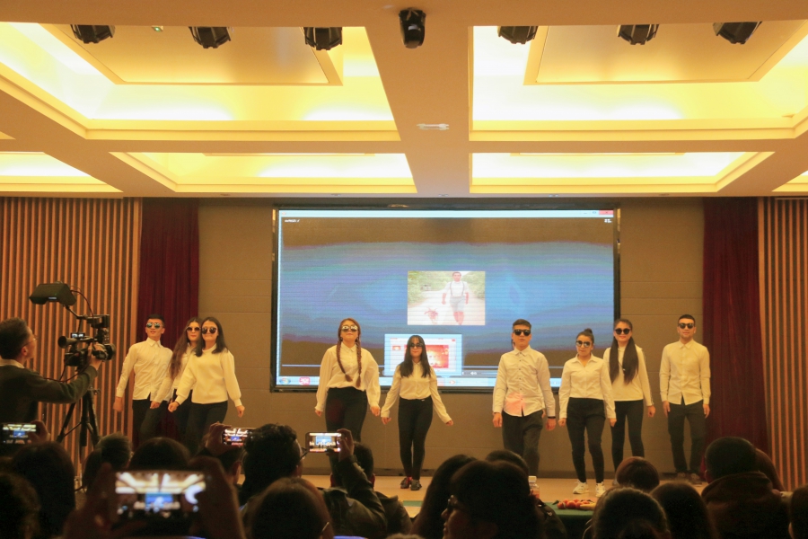 期间还举行游戏环节,“你画我猜”、“抢凳子”等游戏让大家彼此分享快乐的心情;宅舞《流星群》用欢快的节奏承接热烈的气氛;舞台剧《芳华凯哥》拉我们回到过去,浸身在过去的高中年华里;小品《三打白骨精》让现场笑声连连;《歌曲串烧》让杯子发出音乐声附和着少女们的歌声,让观众陶醉于其中;《说唱街舞串烧》带来酷酷的炫风,让年轻得以张扬。至此,一连串精彩的节目告一段落,联欢会在主持人的致辞中圆满结束!