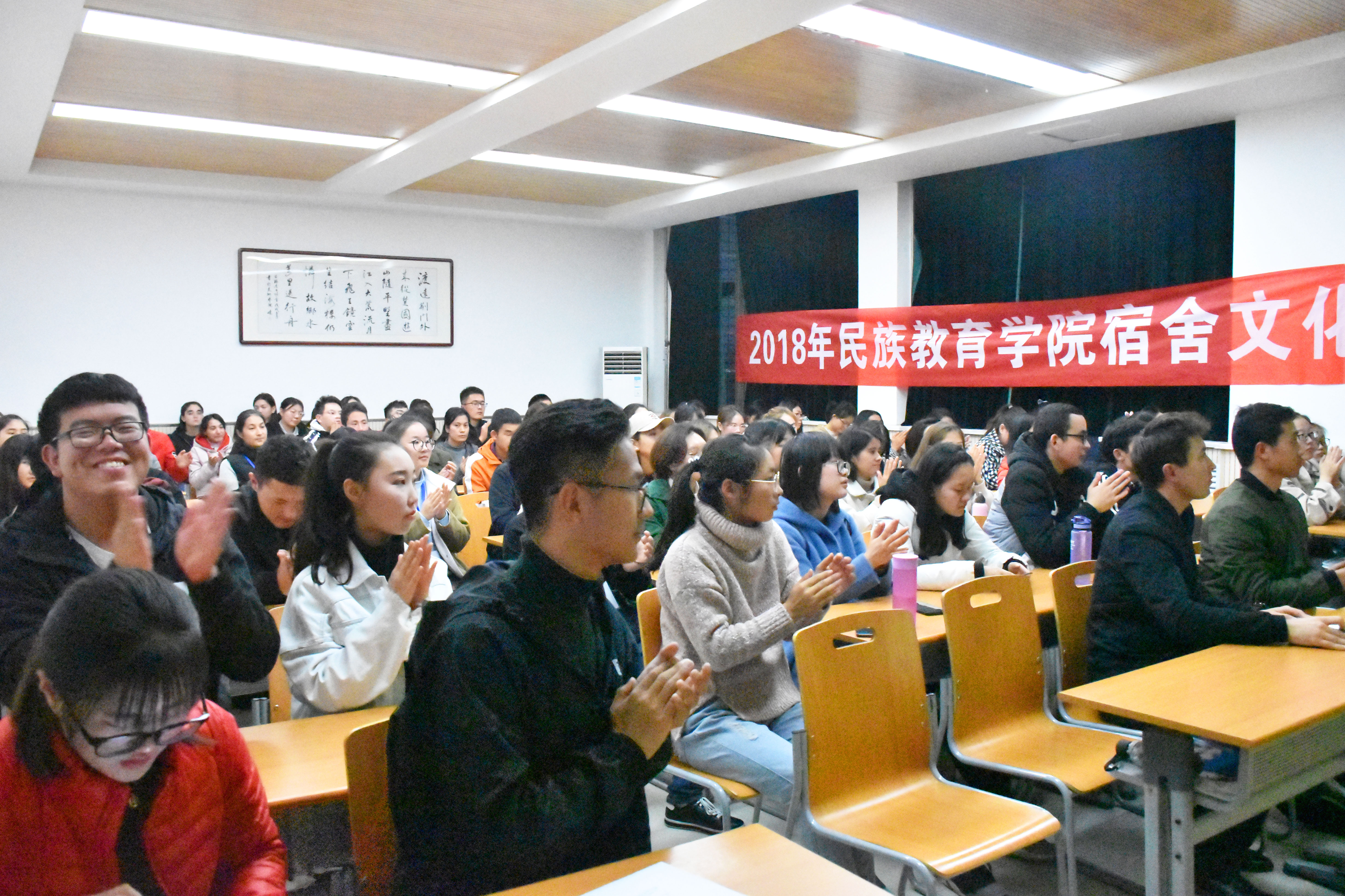 同学们的宿舍生活规范秩序,丰富同学们的宿舍生活,促进舍友之间的情感交流。2018年11月7日下午5时,我院于教学九楼9707教室举行了以“展现民族魅力,共建和谐校园”为主题的宿舍文化月开幕式,参加本次开幕式的人员有辅导员热依木老师,兼职辅导员许珊老师,王国昌老师以及我院同学,大家对此次宿舍文化月所展现的热情使本次开幕式顺利召开。