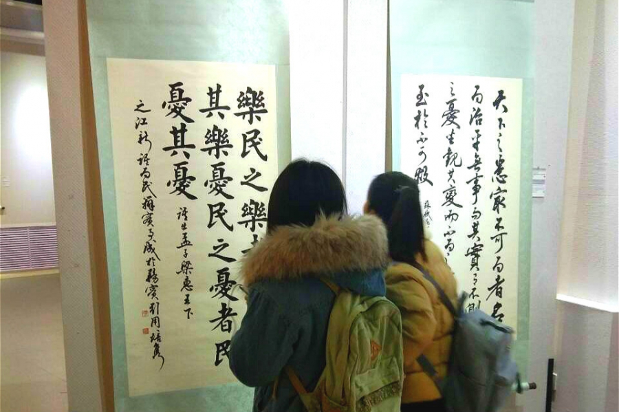 为丰富同学们的课余生活,积极响应习近平总书记对广大青年:“做中国先进文化的积极引领者和建设者、做中华优秀传统文化的忠实传承者和弘扬者”的号召,深入学习党的十九大精神,弘扬社会主义核心价值观,推进爱国主义精神建设。我院预科生于11月16日前往我校长安校区六艺楼美术学院展厅参加书法观展活动,活动由我院组织委员马进龙同学带队,40余名学生共同参与。