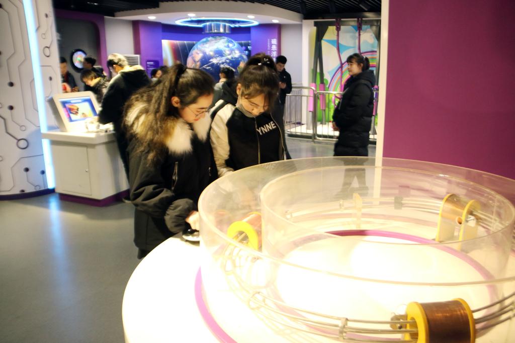 陕西科技馆常设科普展厅共分为一至四层。同学们在一层科技发展史中普及了世界科技发展、中国科技发展、陕西科技发展及未来科技展望等知识。在二层电磁世界里,奥斯特电产生磁实验,地球磁场,地球南北极,霍克斯比电荷电击实验,史提芬格雷等经典装置让同学们目不暇接,同学们学到了电磁方面的科学知识,三层是多功能综合展厅,同学们在展品涵盖的力学、数学、光学、物理学等多方面的知识学科中感叹科技的力量。同学们到了四层多媒体展厅,了解和体验了多媒体技术的发展和运用。常设科普展厅的展品融科学性、知识性、趣味性为一体,同学们亲自动手操作,在参观学习和实践中认识了科学现象、学习了科学知识、掌握了一定的科技方法。