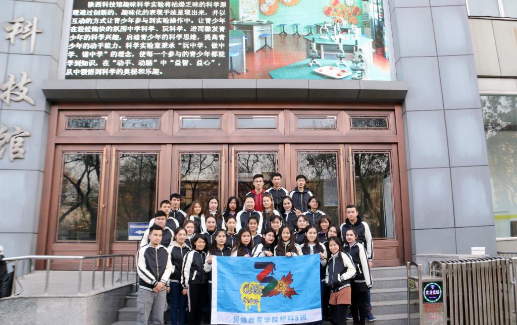 为不断增强学生“五个认同”,铸牢中华民族共同体意识,切实加强民族预科生的爱国主义和理想信念教育,感悟科技魅力,提高学生科学素养201911下午,在辅导员热依木和预科三班班长艾利卡木的带领下,预科三班全体学生带上班旗穿上班服前往陕西科学技术馆开展“感受科技魅力,争做时代新人”参观学习活动。