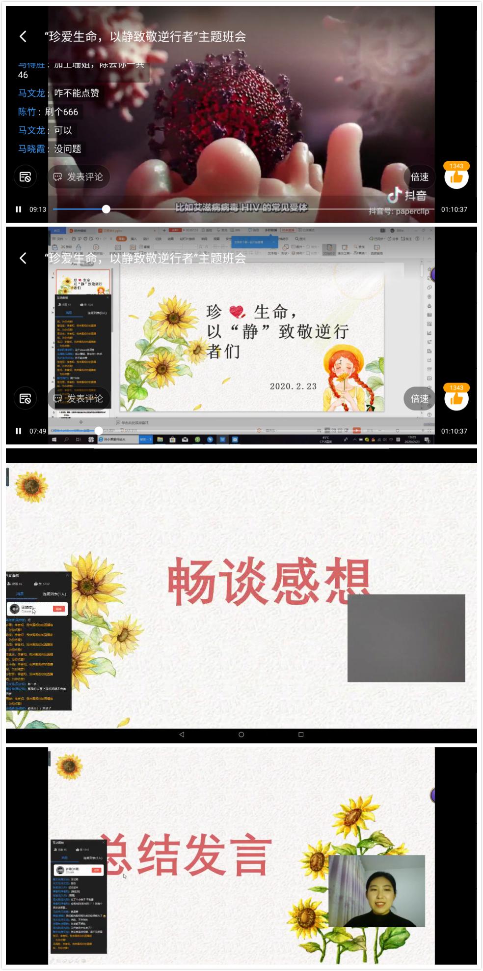 班会过程中,同学们纷纷表示会服从学校安排,完成每日报平安,做好网课学习规划,跟上学习进度。云班会的召开,助力同学们体验人间真情,感受真善美的时代精神,引导同学们构建社会主义核心价值观的大爱精神,进一步增强听党话、跟党走的决心,提振战胜疫情的信心,坚定中国特色社会主义“四个自信”,激励大家用实际行动投入到“疫情抗击战”中。相信在党中央的正确领导下,全国各族人民万众一心,坚定信念,抗疫斗争的最终胜利必定属于我们!