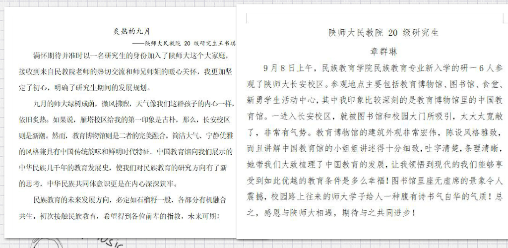 9月8日上午,学院组织2020级研究生对新校区校园和教育博物馆进行了参观学习,感受师大深厚的历史底蕴和文化传承,参观完后学生撰写心得体会,表达真情实感。