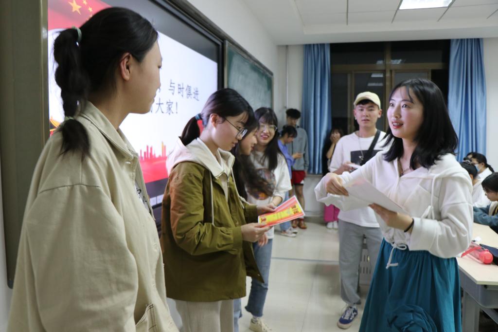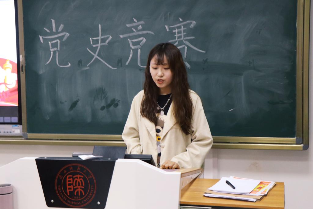 活动伊始,王佳逸同学解读党史学习的教育意义。她指出习近平总书记在讲话中提到:“我们党的一百年,是矢志践行初心使命的一百年,是筚路蓝缕奠基立业的一百年,是创造辉煌、开辟未来的一百年。”她表示,在中国共产党百年华诞之际对新时代青年进行党史教育,引导青年学子知史爱党、知史爱国,是一门至关重要的必修课。