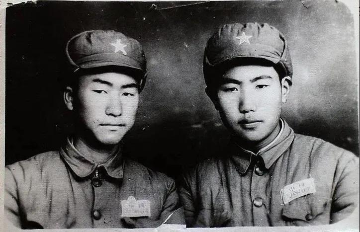 图为杨清源(右)参加抗美援朝之前与战友的合影