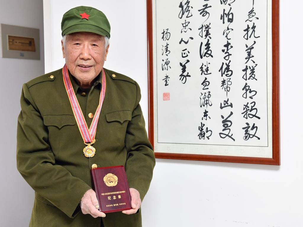 “奖章戴在身上,党对老同志的嘱托永远记在心上,我一定不忘初心、牢记使命,忠诚奉献一辈子。”抗美援朝的老战士、退休教师杨清源身着笔挺的军装,反复端详胸前金灿灿的“中国人民志愿军抗美援朝出国作战70周年”纪念章,91岁老人布满皱纹的双眼闪动着光芒。