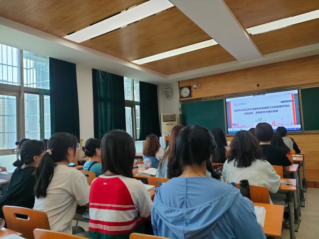 “深化党史学习教育,铸牢中华民族共同体意识”系列主题教育专题辅导讲座在雁塔校区崇鋈楼闻道堂(主会场)、9号教学楼9703、9705教室和六附楼214教室(分会场)同步开讲。学校马克思主义学院副教授朱尉作题为“习近平总书记关于加强和改进民族工作的重要思想的内容结构、逻辑体系与理论品格”的专题学习辅导报告。学院全体学生参加了讲座,讲座由学院团总支书记热依木·努尔麦麦提主持。