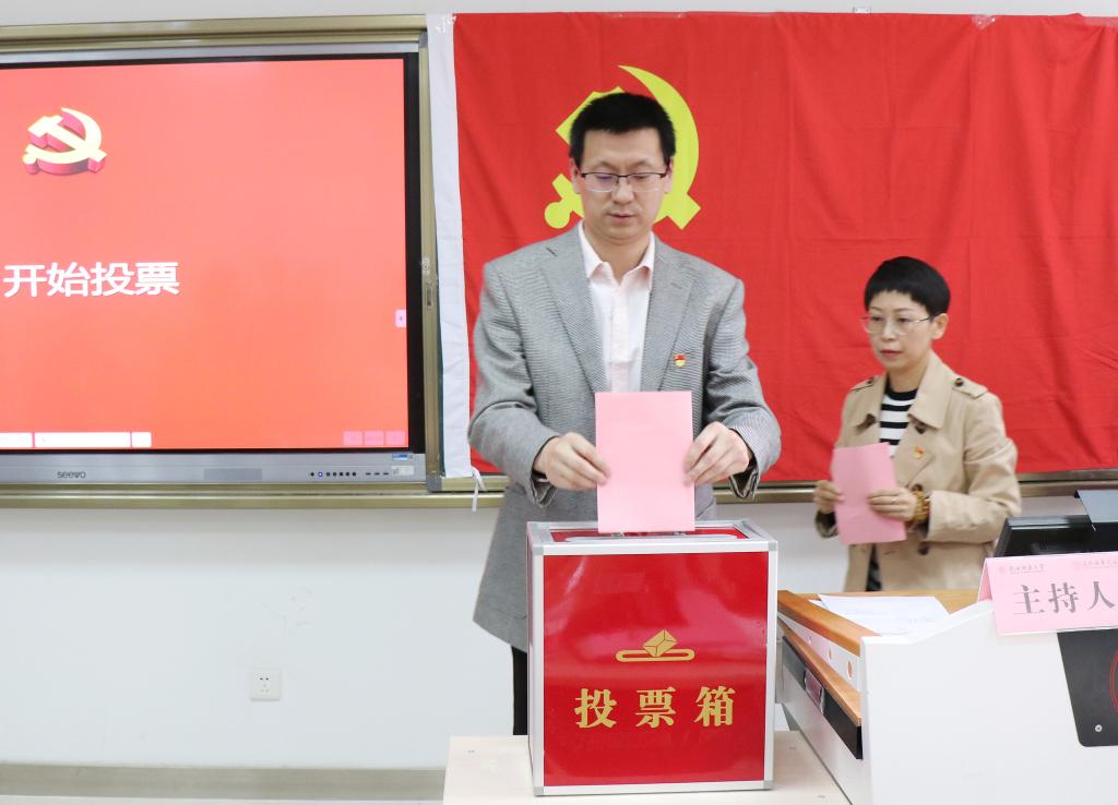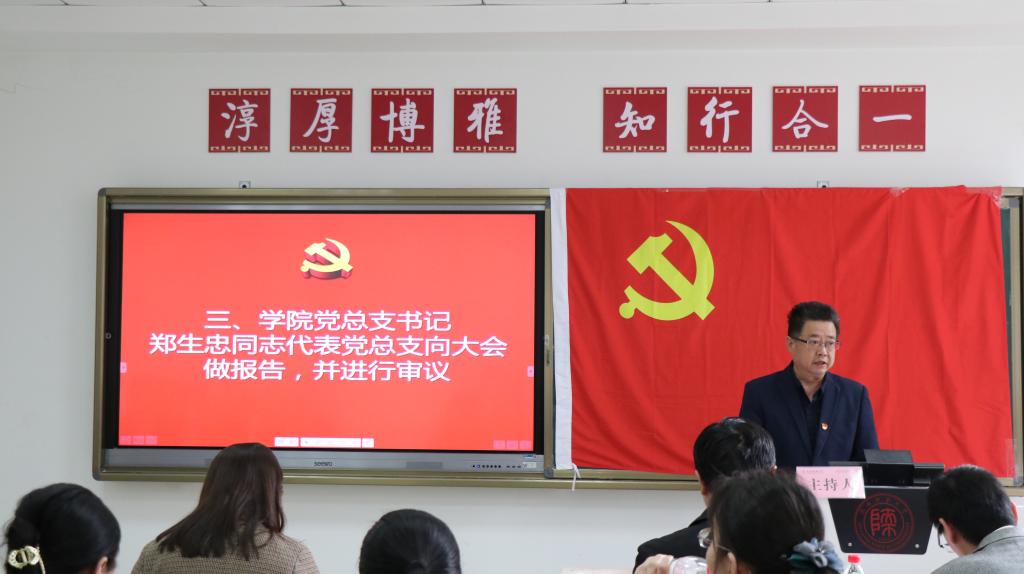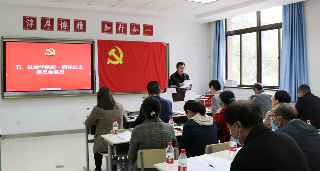 总支部委员会换届选举党员大会。学校党委组织部副部长刘芳参加会议并对大会选举进行指导监督。学院领导班子、全体师生党员参加会议,大会由学院院长、党总支副书记龙宝新主持。