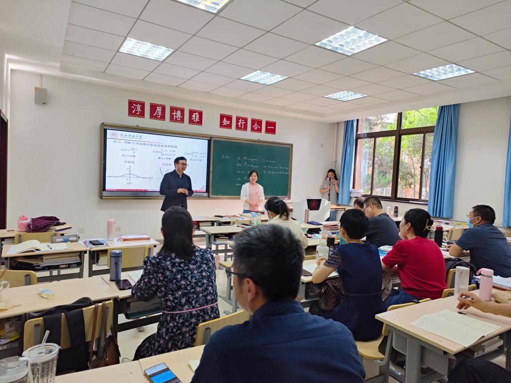 此次教学示范课由王文华老师执教,选取《高等教育基础系列教材:高等数学基础》中函数的连续性为授课内容。王文华老师以生活实例为课程导入,激活学生课堂积极性,引领学生走进课堂内容,便于学生理解数学中抽象性的定义与概念。在实际课堂中,王文华老师将直观动态变化图与静态核心知识点板书相结合、课堂讲授与启发思考相结合、教学目标与思政目标相结合,呈现完整课堂教学结构,课堂效果甚佳。