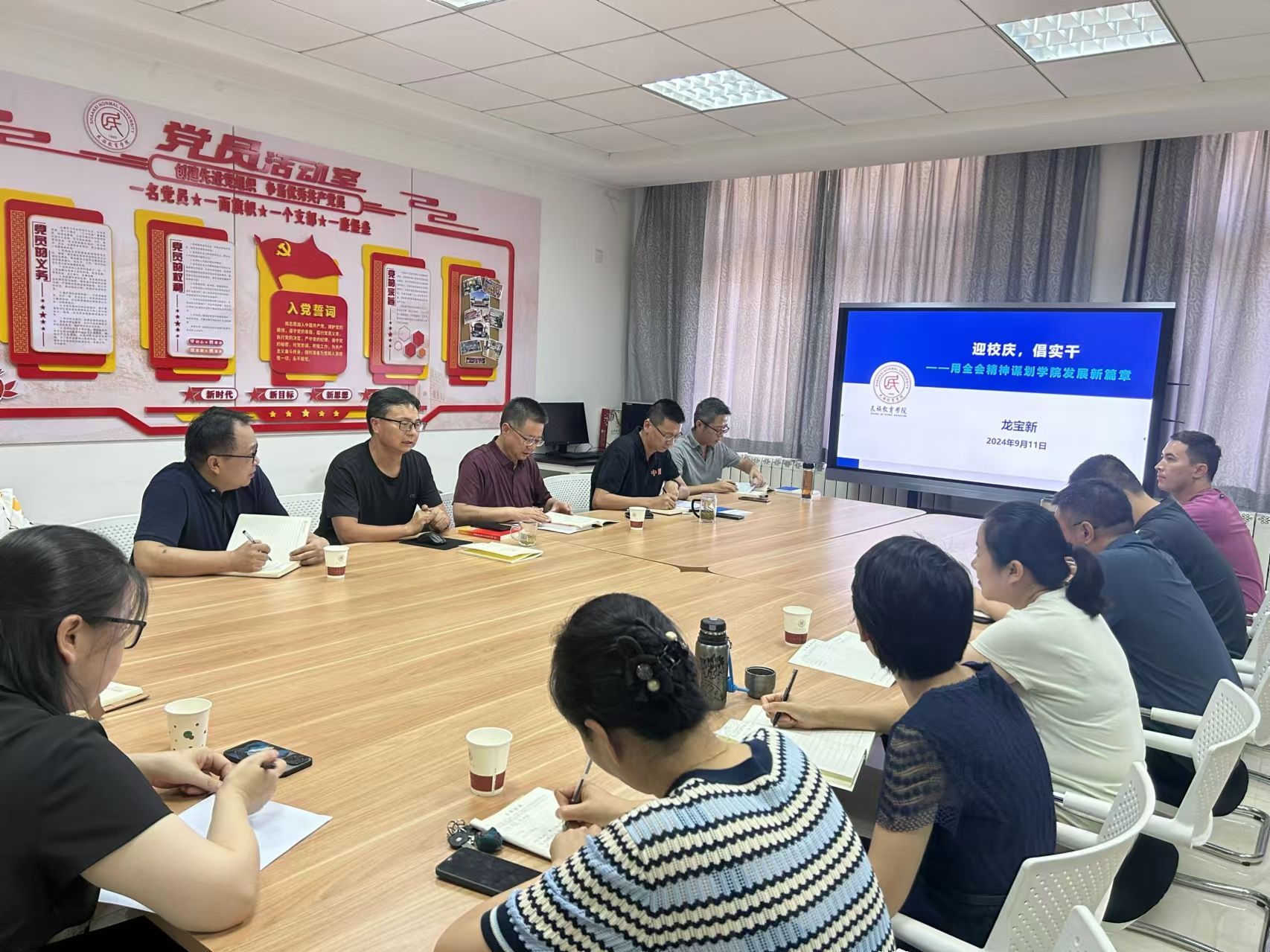 会议伊始,龙宝新院长以铸牢中华民族共同体意识为主线,以“迎校庆,倡实干”为主题,具体阐释了2024年下半年的工作要点,安排部署了学院教学科研各项工作。针对学院教师队伍数量减少和办学经费紧张的现状,他提出了以下发展思路:推进落实“非讲授”教学比重的标准、督查落实“十常规”、推进研究生日常学习的“集中指导”,以及举行校庆“学术节”活动。为了统一步调,使学院工作更有针对性,他还从党团建设与学院治理、教学改革、学术提升与学位教育、教育管理与特色发展等四个方面具体分解了工作要点,以期提高工作的实效性。