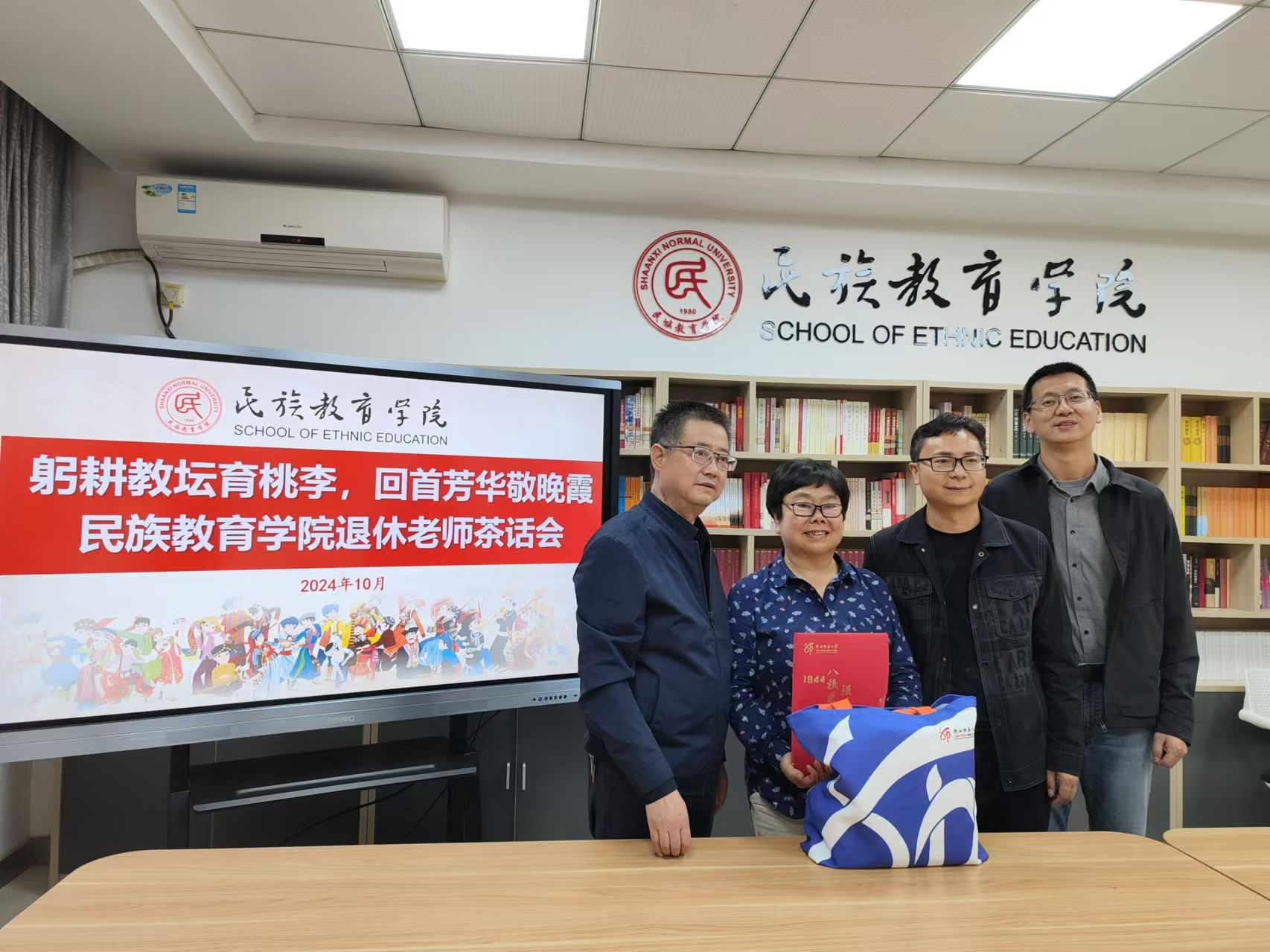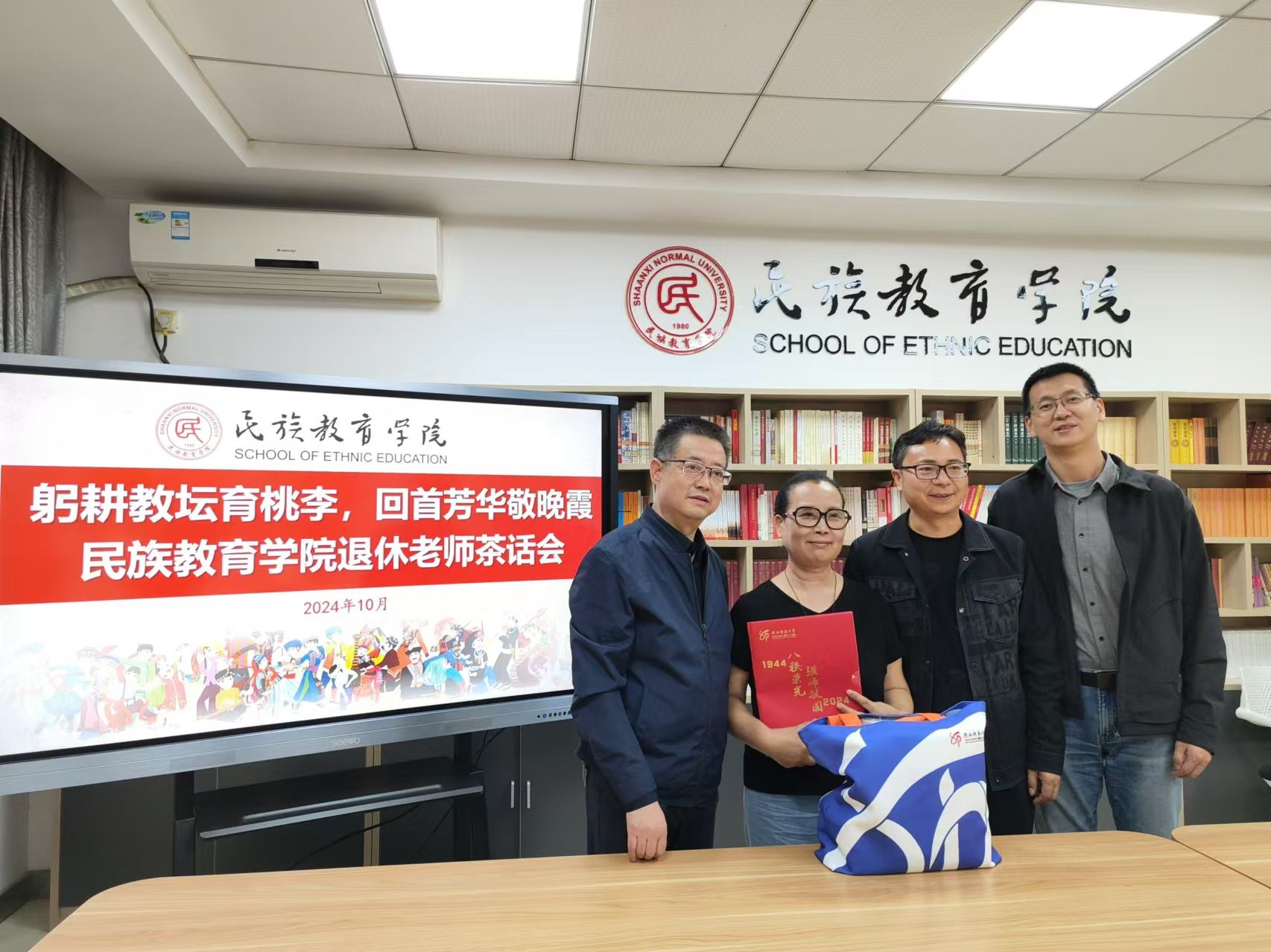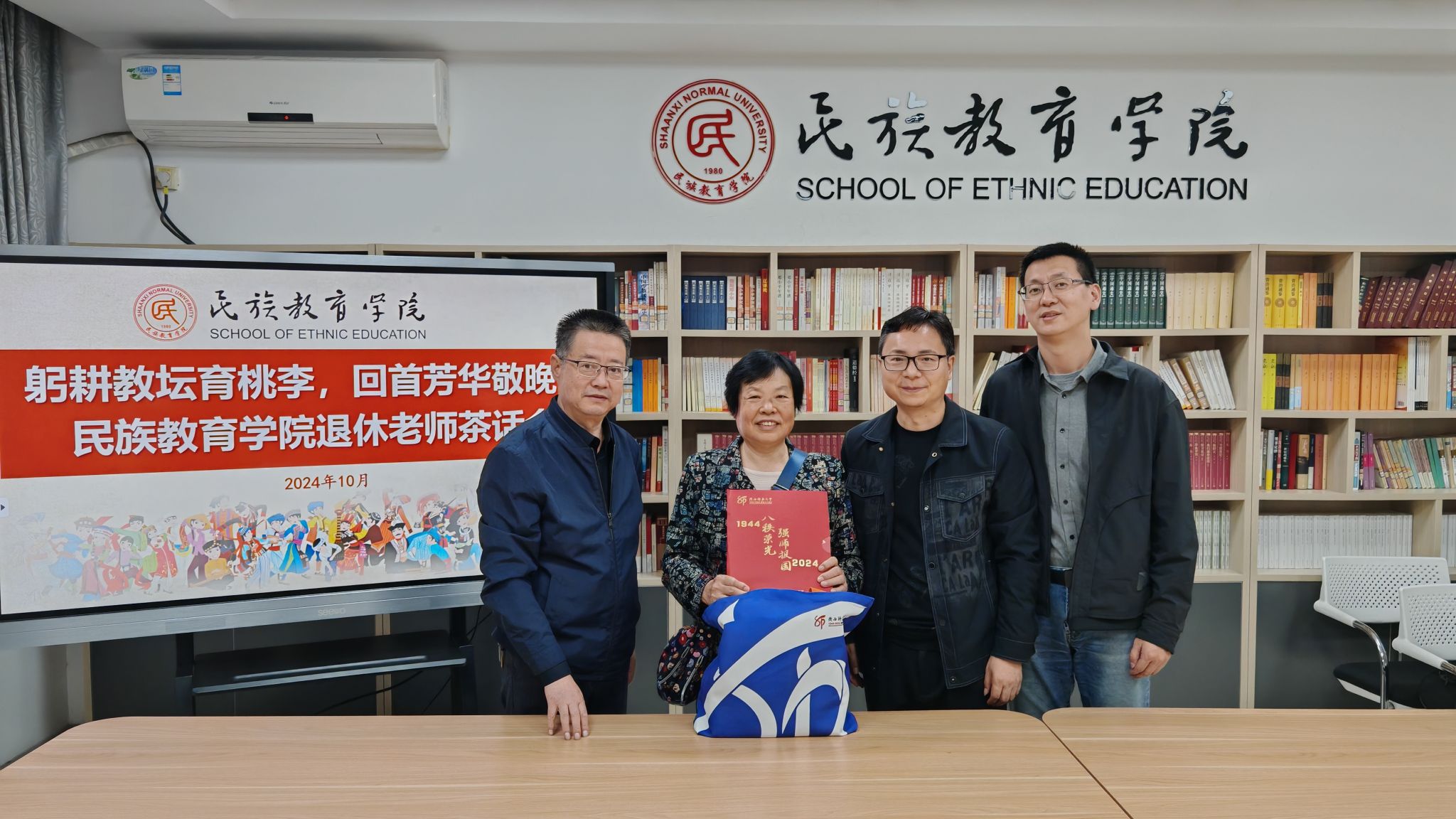 在汇报结束后,学院领导向每位退休老师赠送了精心准备的校庆纪念品。这些纪念品不仅承载着学校80年的光荣历史,更寄托了学院对退休老师们的敬意和感激之情。退休老师们欣喜地接过纪念品,脸上洋溢着幸福的笑容,场面温馨动人。