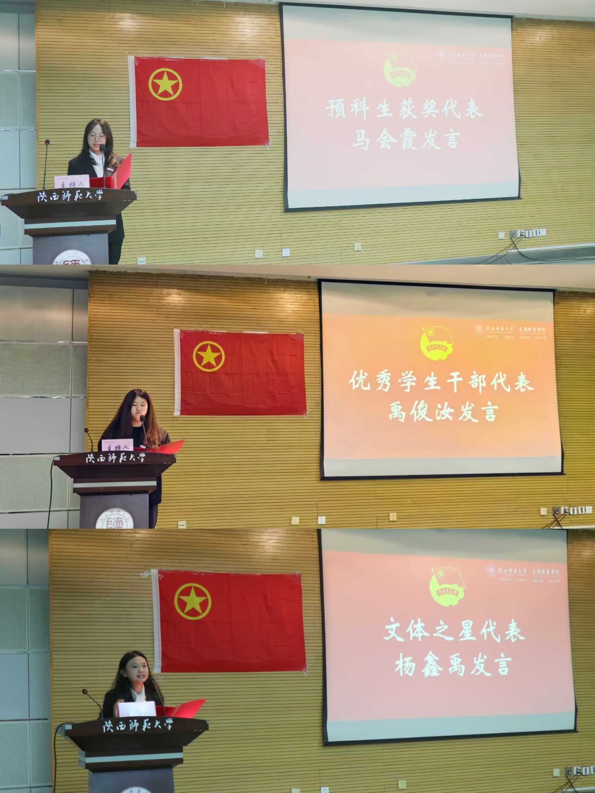 优秀学生代表马会霞、优秀学生干部代表禹俊汝、文体之星代表杨鑫禹同学依次上台发言。他们的发言从不同维度生动诠释了民教学子积极进取、追求卓越的精神风貌,为广大同学树立了榜样,激励着更多学子在新时代新征程中,不断努力,逐梦而行。