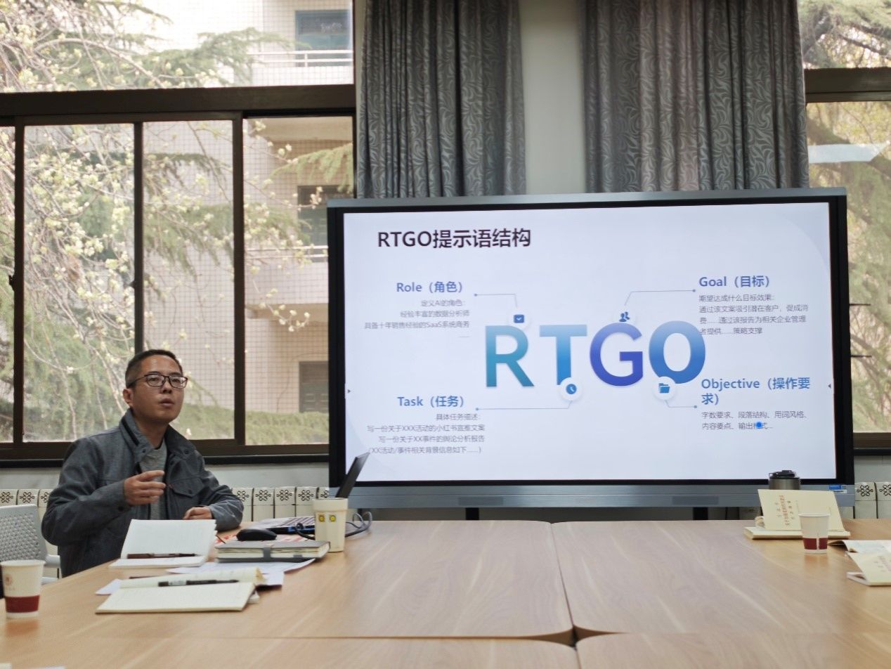 培训中,刘丁副教授首先介绍了DeepSeek的API开放平台文档中需要学习的信息,接下来则详细演示了提示词优化、角色扮演等实用技巧。他还分享了RTGO和CO-STAR提示语框架,并以书目推荐、招生文案撰写为例,展示如何精准引导AI生成高质量内容。此外,刘老师还现场演示了如何利用DeepSeek和其他工具的协同工作,快速制作数据可视化图表、思维导图和教学科研PPT,极大提升工作效率。
