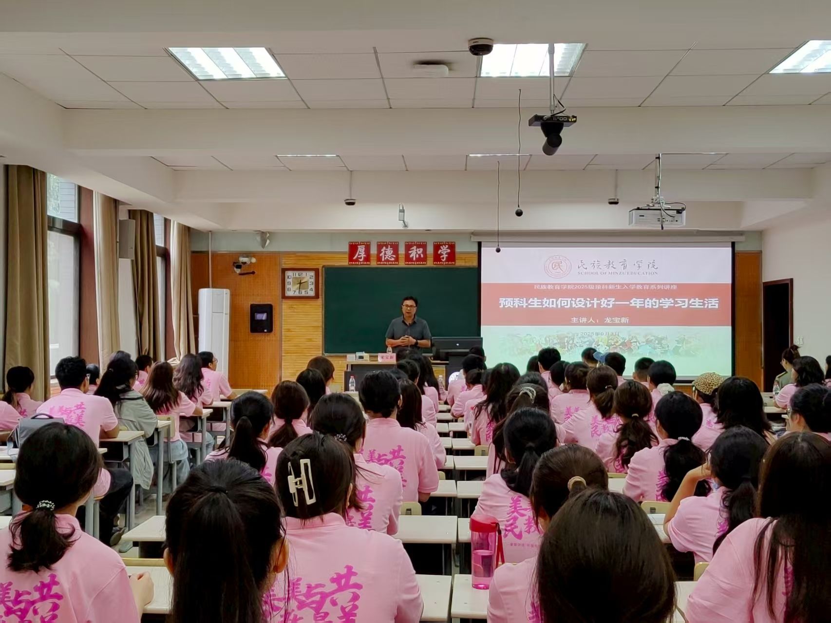 2025级新生入学教育系列讲座第一讲在雁塔校区5206教室举办。学院院长龙宝新以“预科生如何设计一年学习生活”为主题开讲,学院党总支书记闫文浩主持讲座,党总支副书记高冬、专职辅导员米尔微提、兼职辅导员刘江珊及 2025 级全体新生共同参与,为新生开启了“预科成长第一课”。