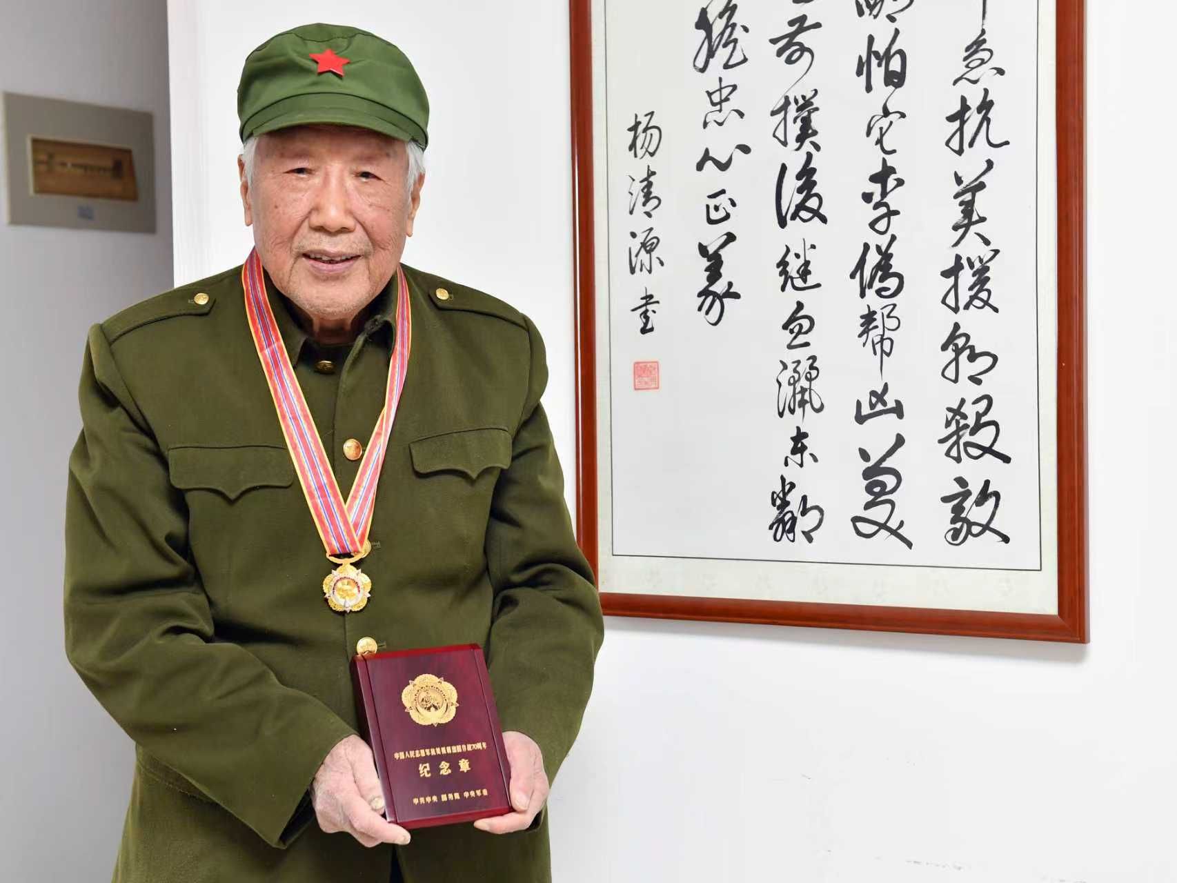 参加抗美援朝的老战士、退休教师杨清源是纪念章获得者之一。那天,杨清源身着笔挺的军装,坐在家中收看电视直播。在总书记的讲话结束后,他反复端详着胸前的“中国人民志愿军抗美援朝出国作战70周年”纪念章,对前来采访的记者说:“能够获得这枚具有特殊纪念意义的奖章,我心里很是激动。聆听了习近平总书记的讲话,与会场的老同志们一起唱国歌、一起鼓掌,内心感到无比的骄傲和光荣。奖章戴在身上,党对老同志的嘱托永远记在心上,我们一定不忘初心、牢记使命,忠诚奉献一辈子。”送走记者,他的思绪回到当年……