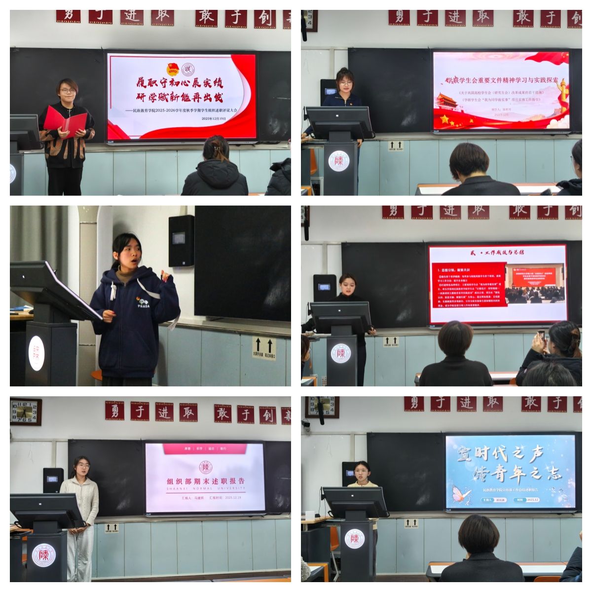 召开2025-2026学年度秋季学期学生组织述职评议大会。学院党总支副书记高冬,专职辅导员米尔微提·赛尔克汗,团委学生兼职副书记、兼职辅导员刘江珊以及学生组织全体成员参加会议,会议由主席团成员肖佳乐主持。